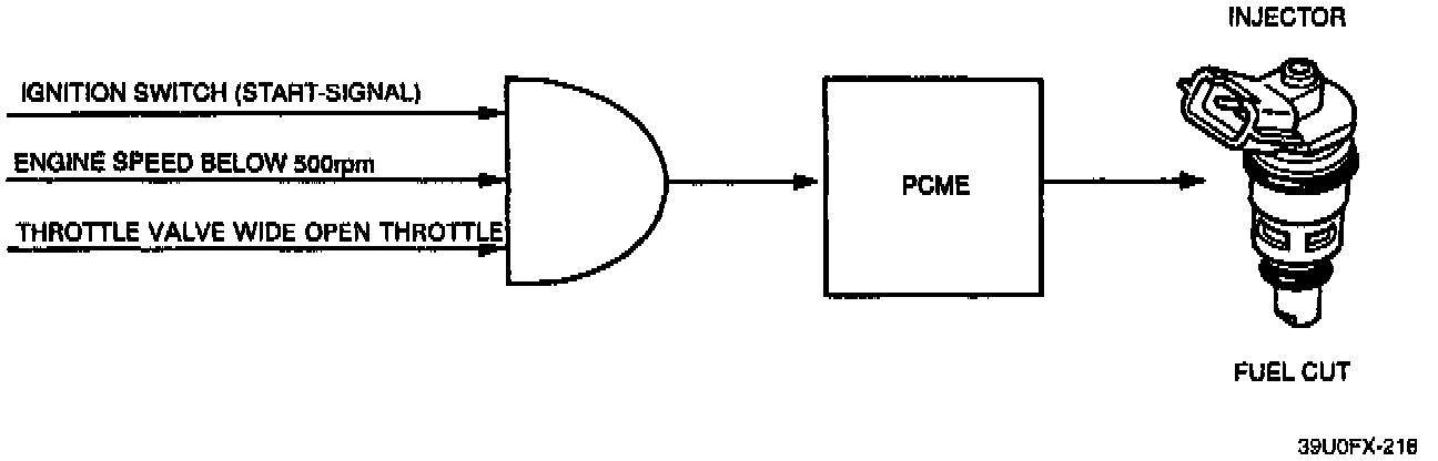 No fuel is injected if the accelerator is held fully depressed during engine cranking.
