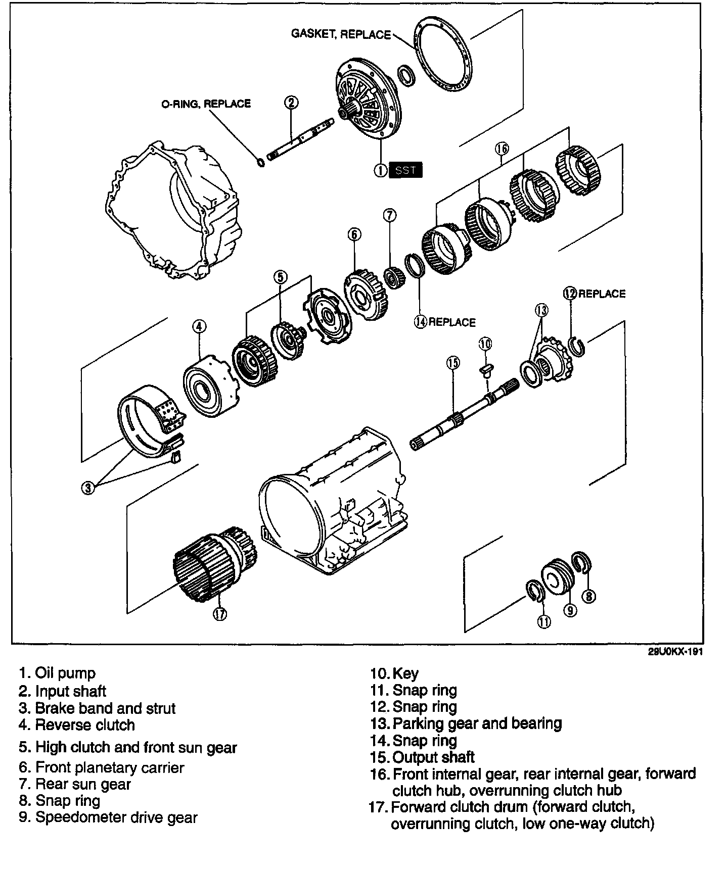 2. Inspect the individual transmission components in accordance with the QUICK DIAGNOSIS CHART during disassembly.