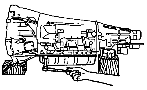 1. Place the transmission on wooden blocks under the converter housing and the extension housing.