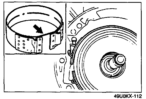 45. Remove the brake band and hold it together with a piece of wire as shown in the figure.