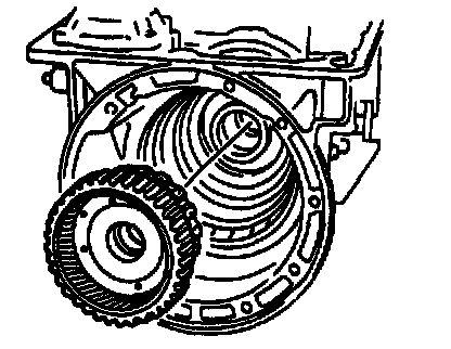 57. Remove the rear internal gear, forward clutch hub, and overrunning clutch hub assembly.