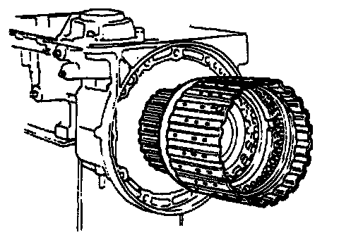 47. Remove the reverse clutch, high clutch, and front sun gear assembly from the transmission case.