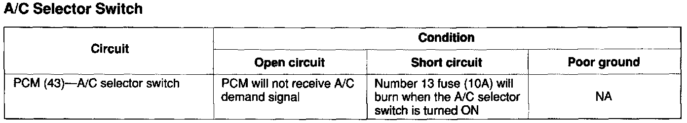 - If the circuit is open, the PCM will not receive the A/C demand input signal.
