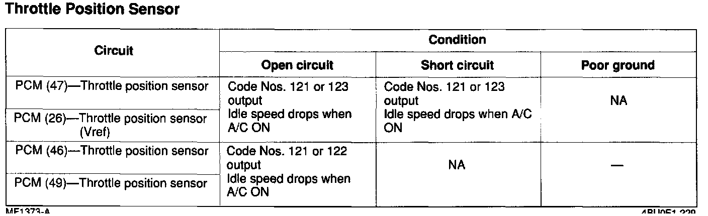 - If the throttle position sensor circuit fails, rough idle, poor acceleration or shift shock (AT) may occur.