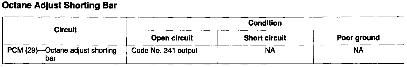 If the octane adjust shorting bar or circuit has an open, Diagnostic Trouble Code No. 341 is output.