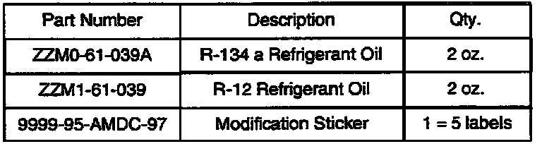 ^ If an "Authorized Modification" decal exists with this Service Bulletin number listed, DO NOT add any additional refrigerant oil other than the amount in the workshop manual or BETM.