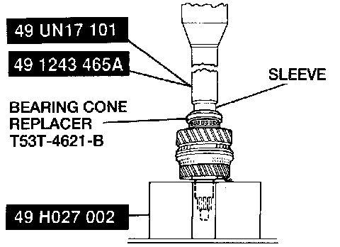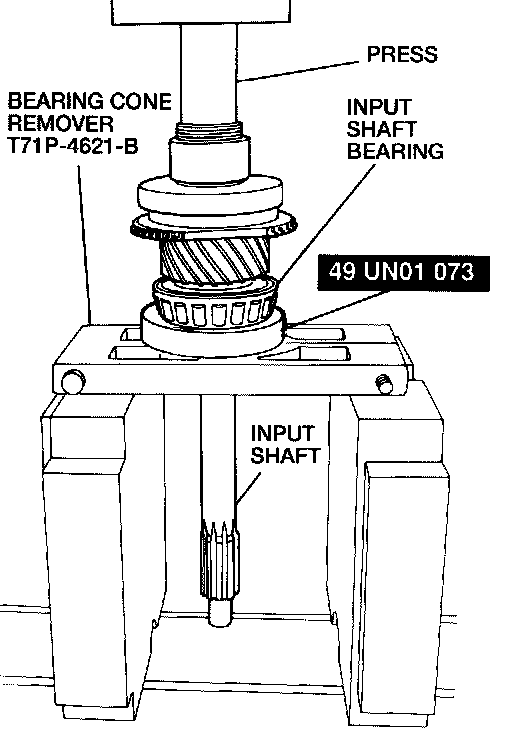 1. Press the primary shaft bearing onto the primary shaft using Bearing Cone Remover 171 P-4621 -B, or equivalent and the SST.