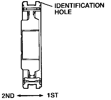 Note: When installing the clutch hub and sleeve (1st/2nd), make sure that the smaller width of the sleeve faces the 2nd gear side. The reference marks face the rear of the transmission.