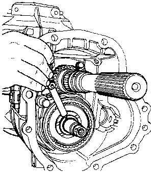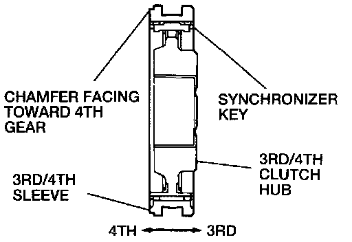 Note: The front and rear sides of the clutch hub may appear to be similar. Install the clutch hub with the chamfer facing 4th gear.