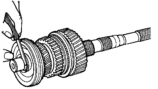 4. Measure the end play between the retaining ring and the reverse idler gear.