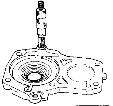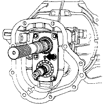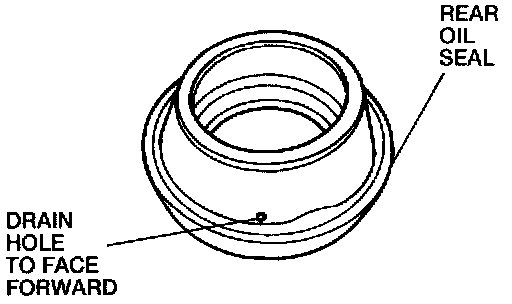 Note: Make sure that the oil seal drain hole faces downward. The extension housing bushing cannot be serviced. If the bushing requires service, the extension housing must be replaced. (4x2 only)