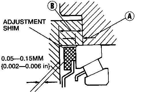B-A + adjustment shim: O.05-O.15mm {0.002-0.006 in}