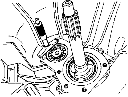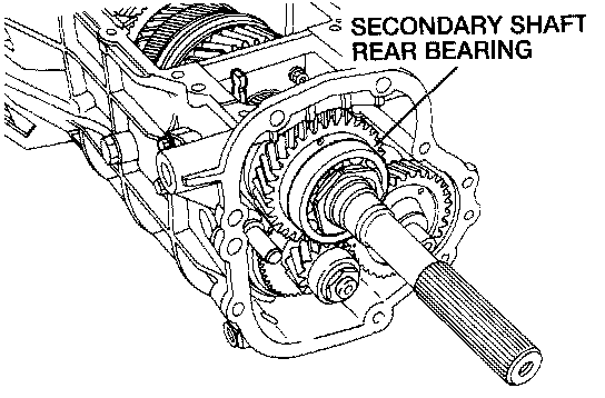 Note: Fabricate a sleeve where the inside diameter is large enough to fit over the secondary shaft but small enough to engage the inner bearing race.