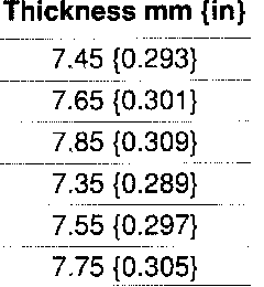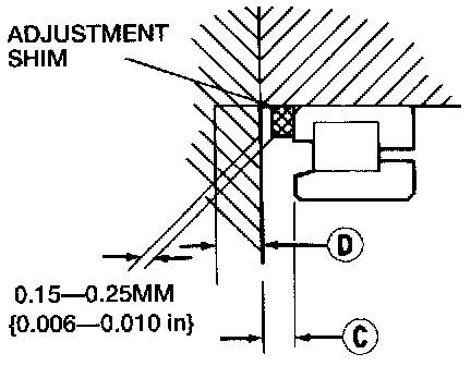 C+D - adjustment shim: 0.15-O.25mm {0.00-0.010 in}