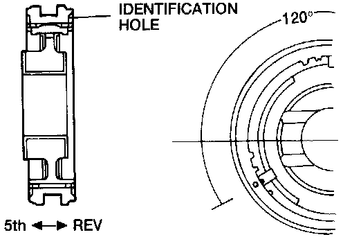 2. Install the longer flange on the clutch hub sleeve toward the 3rd gear side.