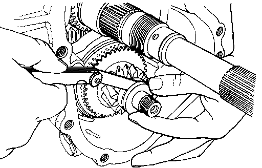 1. While pushing the thrust washer against the shoulder on the countershaft, measure the clearance between the thrust washer and the countershaft reverse gear.