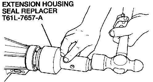 2. install the extension housing rear oil seal using the Extension Housing Seal Replacer T61 L-7657-A, or equivalent.