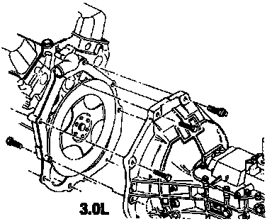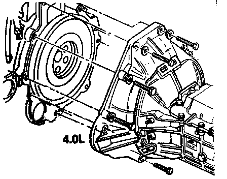 17. Install the transmission bolts and flatwashers.