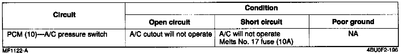 - If the circuit is open, wide open throttle A/C cutout will not occur.
