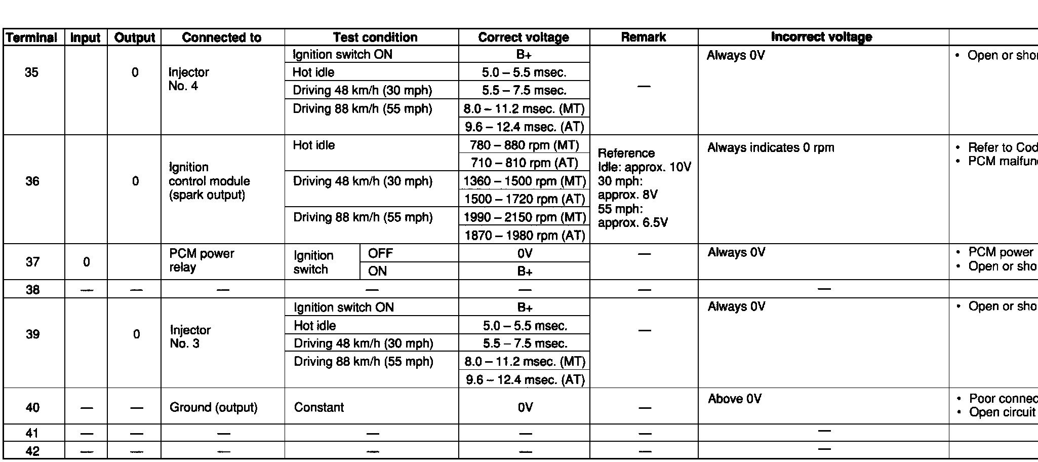 P� PCM Pins 35 Through 42 NOTE: All values shown may vary 20% depending on operating conditions and other factors. RPM values may vary with axle ratios and tire size.: