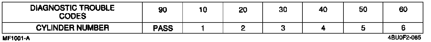 2. Note any Diagnostic Trouble Code numbers and refer to the chart for the weak cylinder.