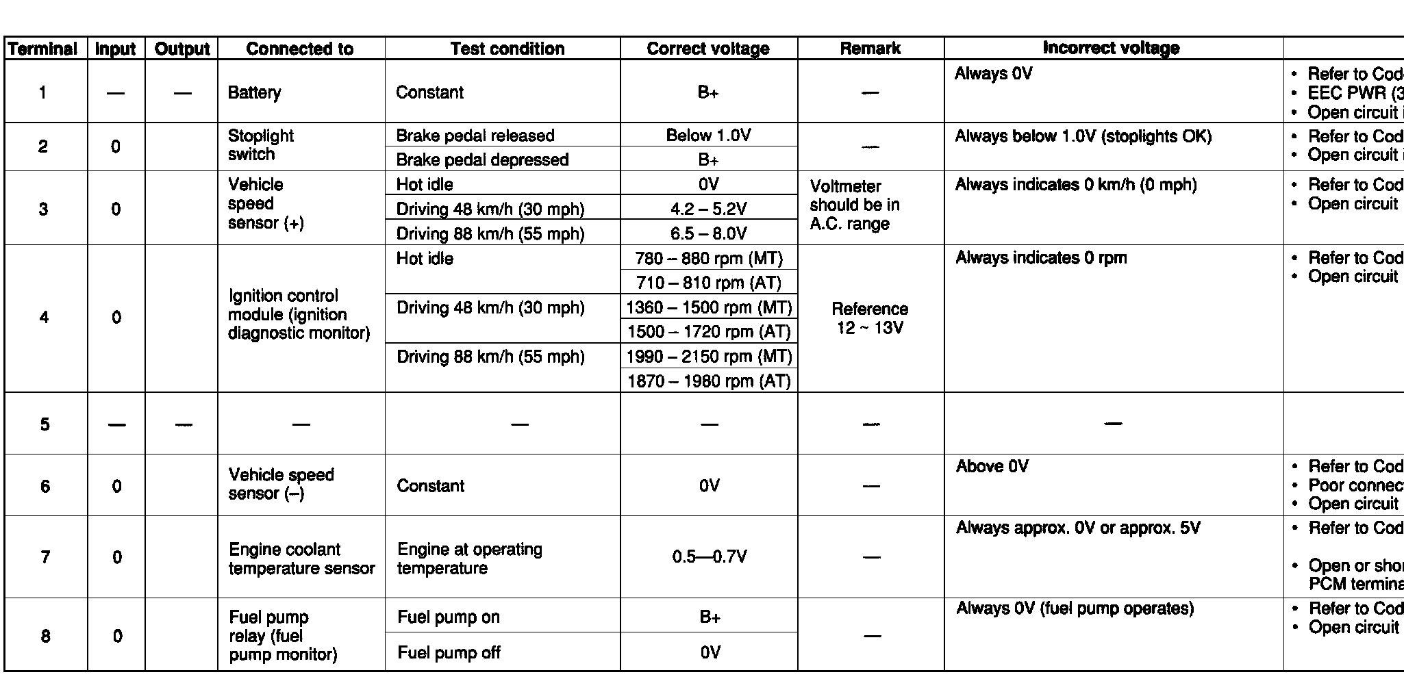 ��PCM Pins 1 Through 8 NOTE: All values shown may vary 20% depending on operating conditions and other factors. RPM values may vary with axle ratios and tire size.: