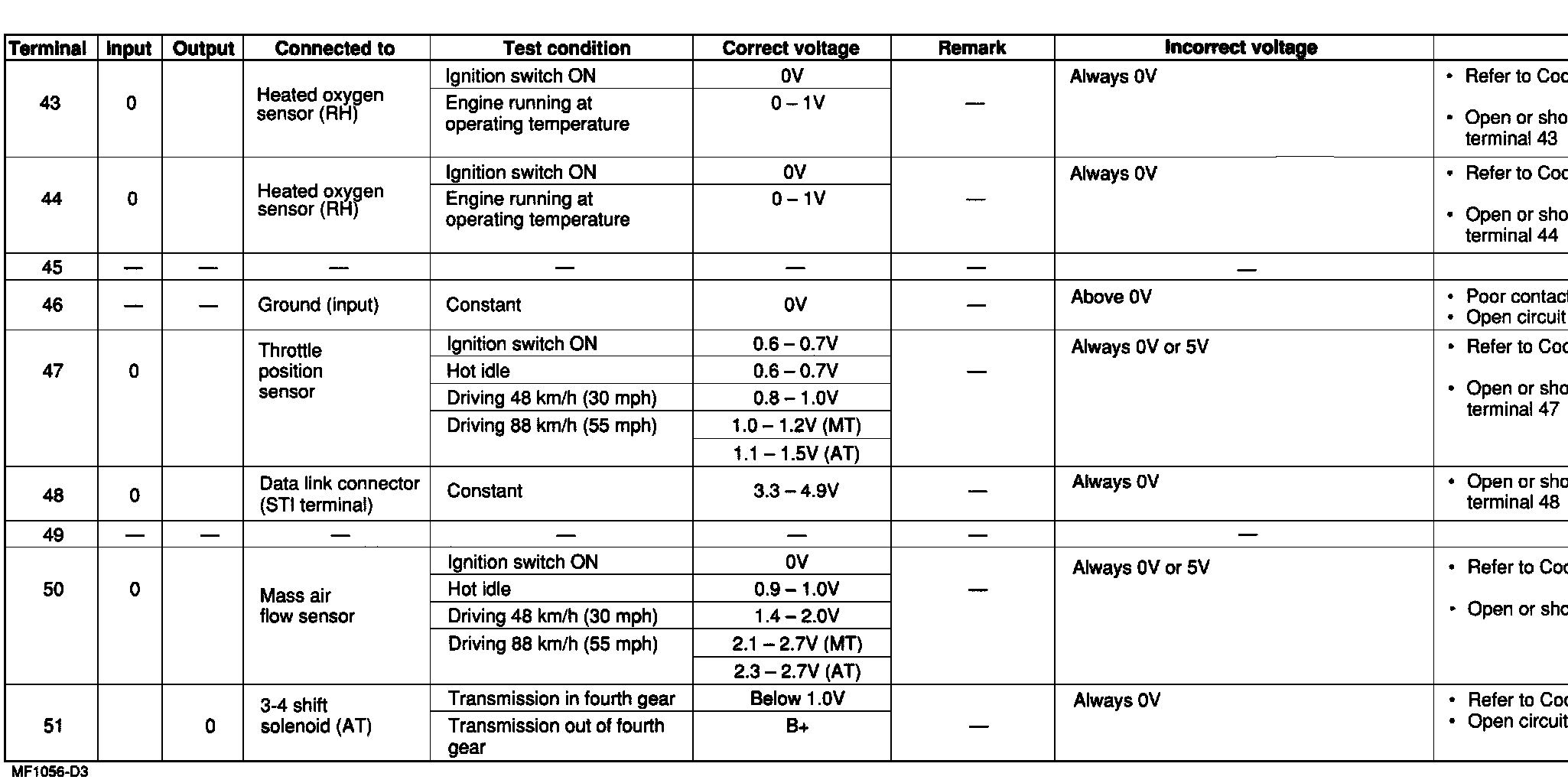 d�� PCM Pins 43 Through 51 NOTE: All values shown may vary 20% depending on operating conditions and other factors. RPM values may vary with axle ratios and tire size.: