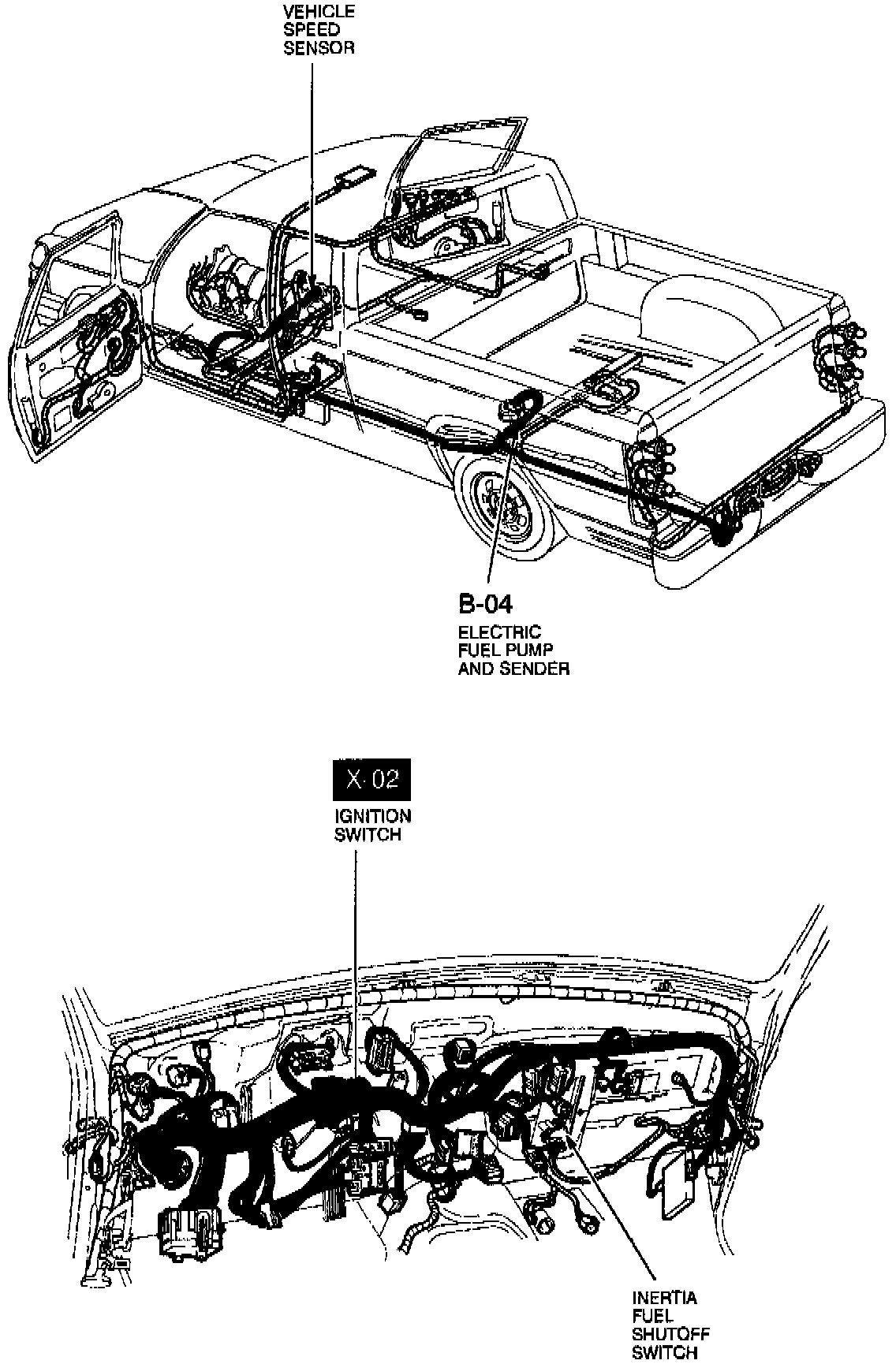 X- and B- Designate Connectors Shown in Wiring Diagrams: