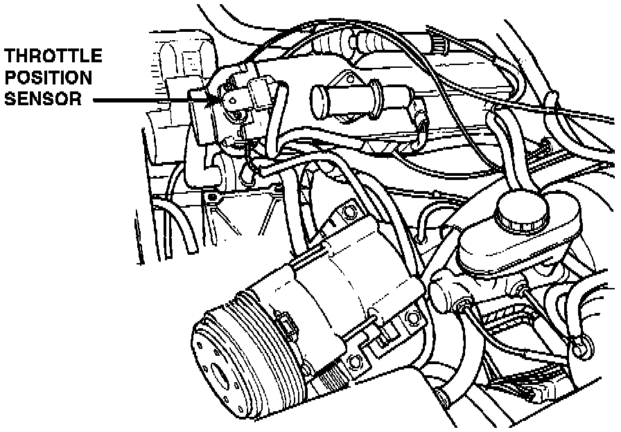 The Throttle Position Sensor is located on the left side of the Throttle Body assembly.