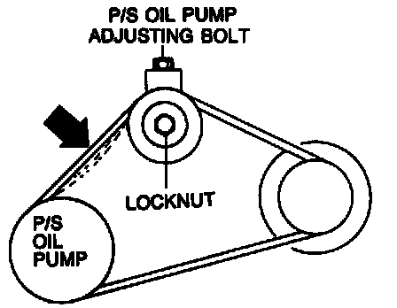Note: Measure the belt deflection between the specified pulleys. A belt is considered "New" if it has been used on a running engine for less than five minutes. Set the deflection specified below accordingly. Check the belt deflection when the engine is cold, or at least 30 minutes after the engine has stopped.