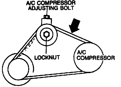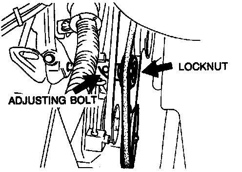 If necessary, loosen the A/C locknut and adjust the belt deflection by turning the adjusting bolt.