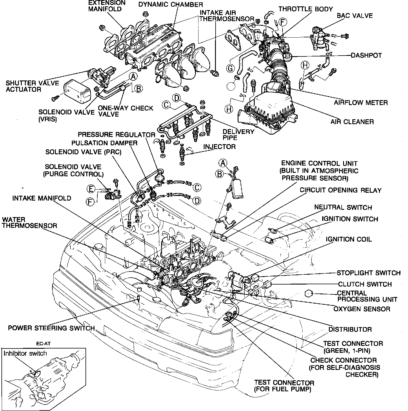 GREEN 1-Pin connector (for self-diagnosis checker, idle speed and timing adjustment) L.F. corner of engine compartment.