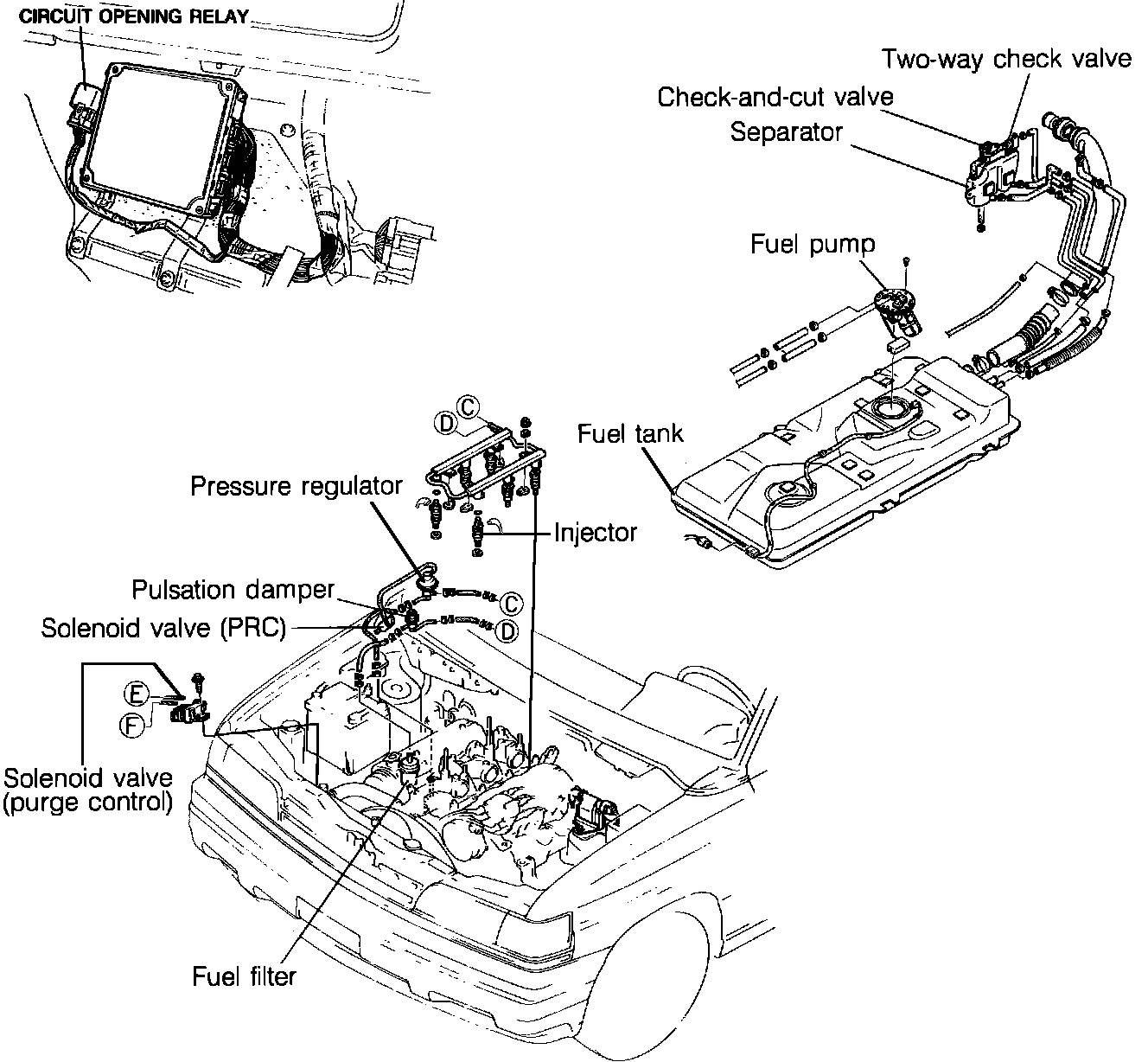 YELLOW 2-Pin connector (for fuel pump) L.F. corner of engine compartment.