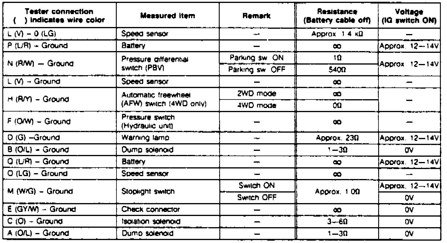 Fig. 126 Control Unit Voltage/Resistance Specification: