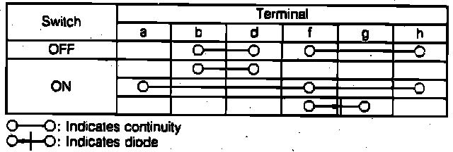 1. Remove A/C Switch, and check continuity according to Fig. 3.