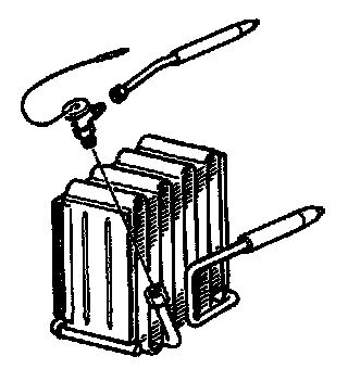 Expansion Valve RemovalNote: Before replacement of the expansion valve, carefully check the refrigeration system, referring to the symptom flowchart, "Insufficient Cooling; No Cooling; Intermittent Cooling". Testing and Inspection
