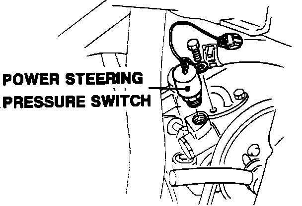 The Power Steering Pressure Switch is an "ON/OFF" switch that detects when system pressure increases (turning steering wheel) to cause a load on the engine. The ECU response to the "ON" signal is to raise idle speed as required by activating the ISC valve. This input is also utilized by the ECU in calculating fuel injection quantity.