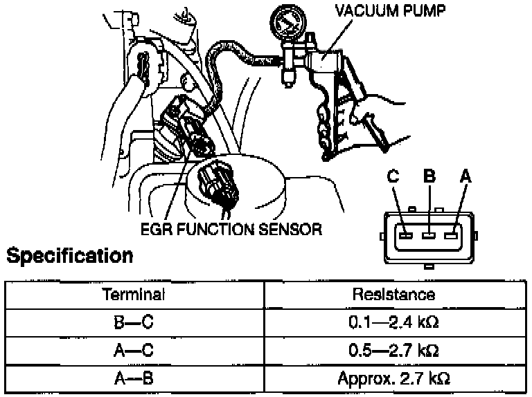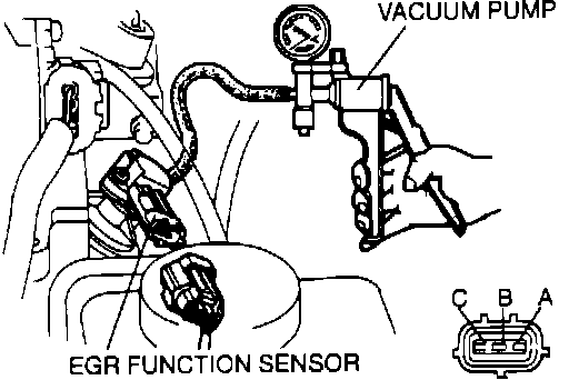 1. Unplug sensor connector. Disconnect vacuum hose and connect vacuum pump.