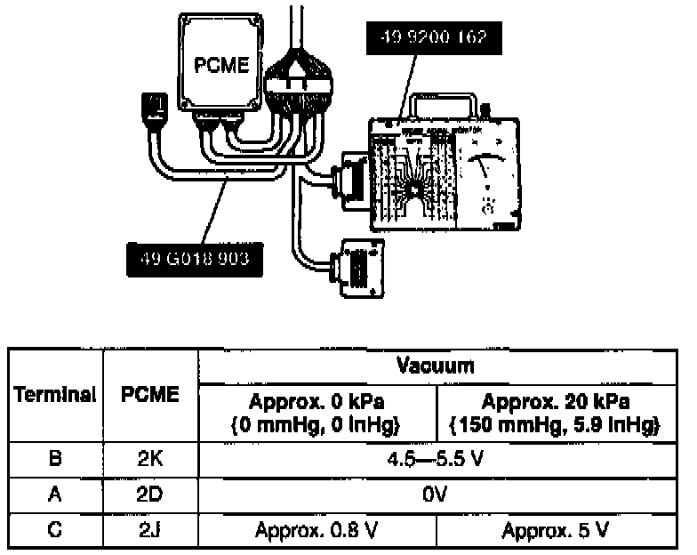 OUTPUT VOLTAGE INSPECTIONSST-49 9200 162 Engine Signal Monitor, SST-49 G018 903 Adapter Harness: