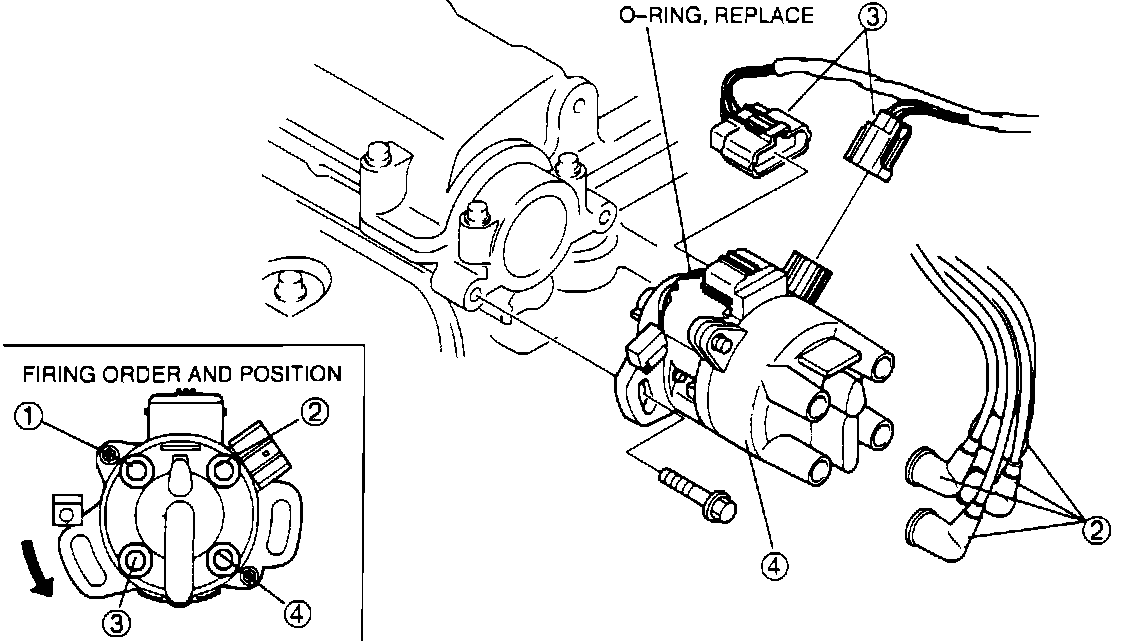 4. Remove mounting bolt and lift off distributor. Do not turn engine while distributor is removed.