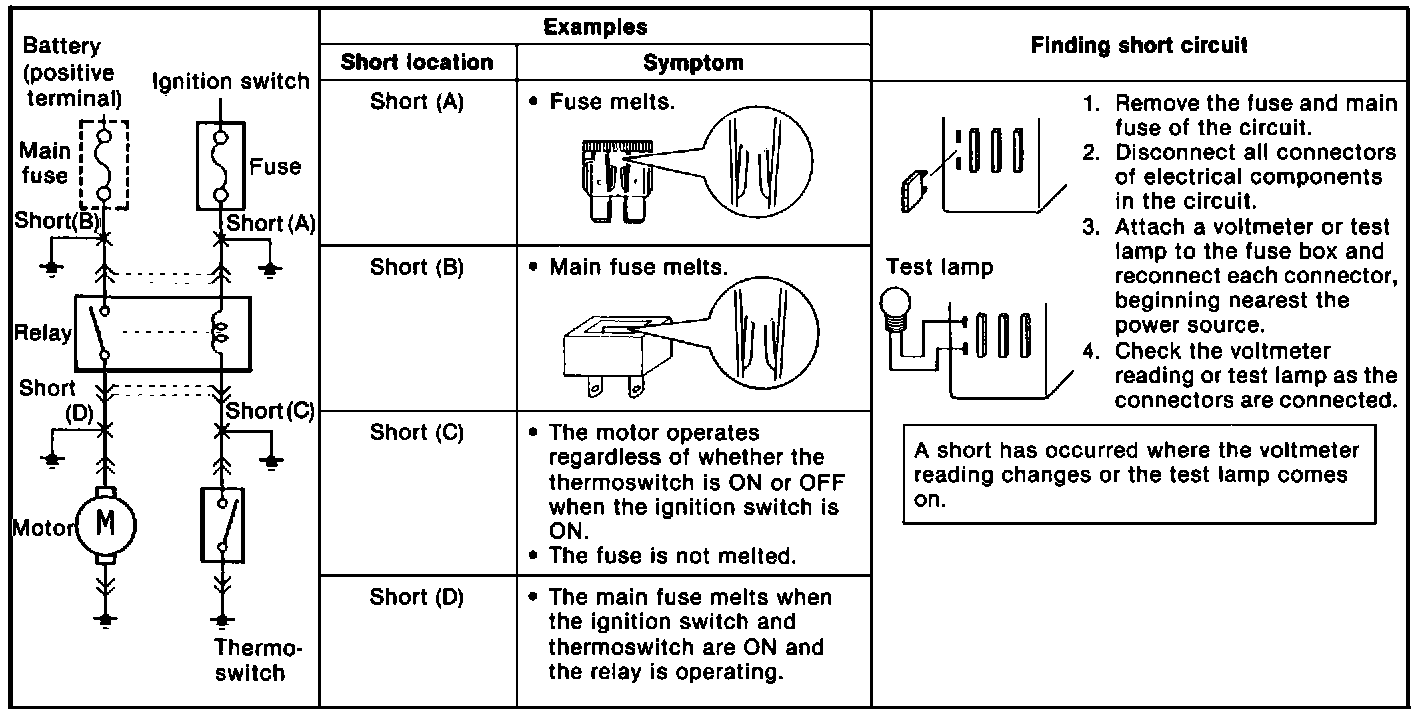 Shorts occur between the power (positive) and ground (negative) sides of a circuit. Therefore, finding a short circuit requires determining how the circuit is routed.