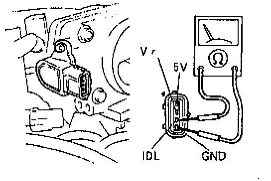 2. Connect an ohmmeter to the throttle position sensor terminal IDL and GND.