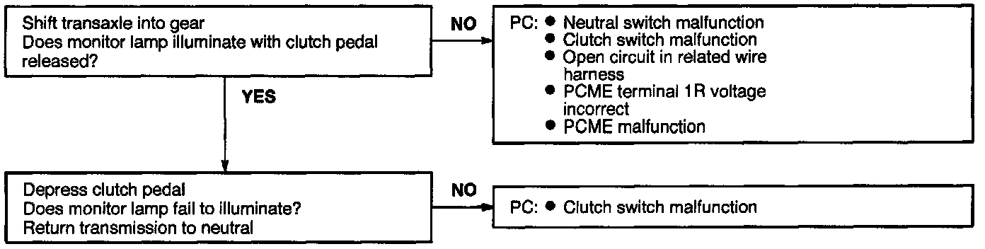 - If monitor lamp remains illuminated then each switch and related harness needs inspection until the faulty circuit and/or switch is identified.
