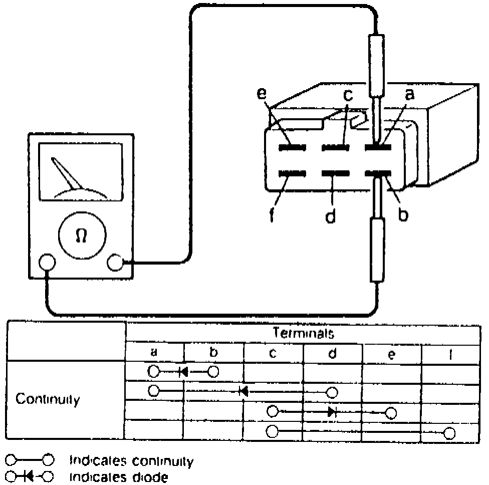 1. Check continuity between terminals as shown, Fig. 3 and 4.Fig. 3 A/C Relay Test: