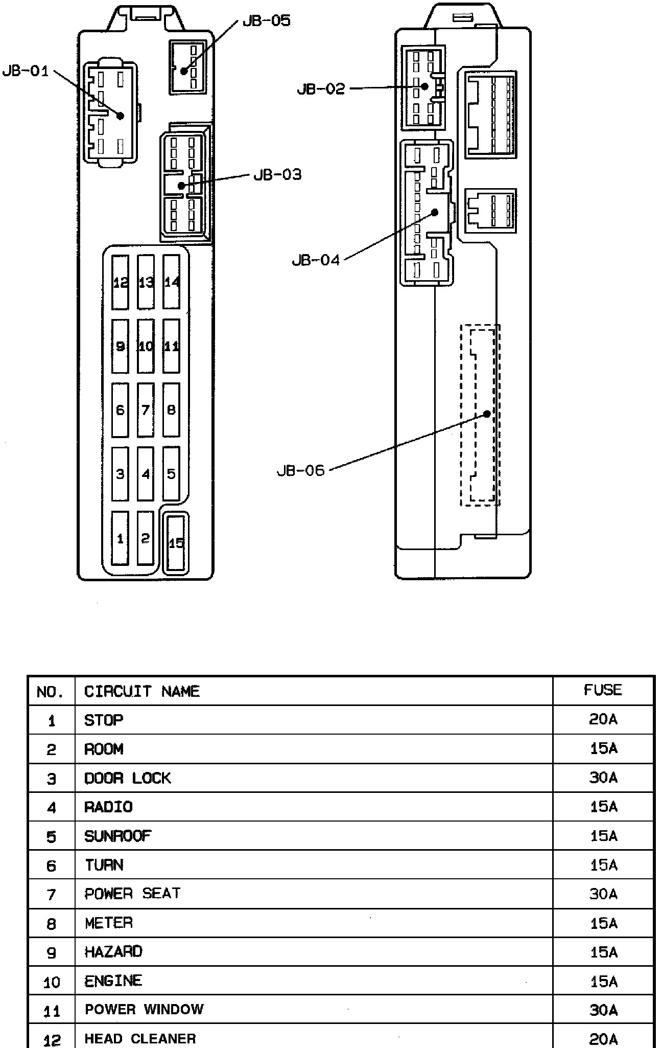 -C*Joint Box Connectors And Fuse Location: Front/Rear View: