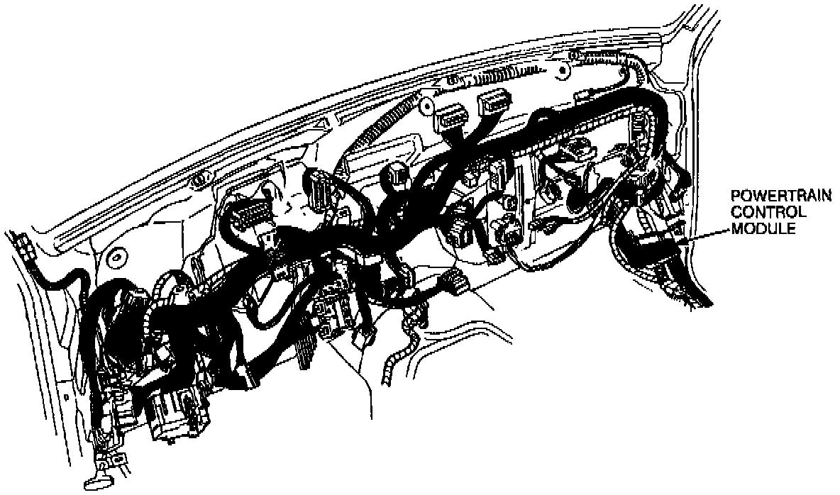 The Powertrain Control Module is located on the right side of the passenger compartment near the footwell, kick panel area.