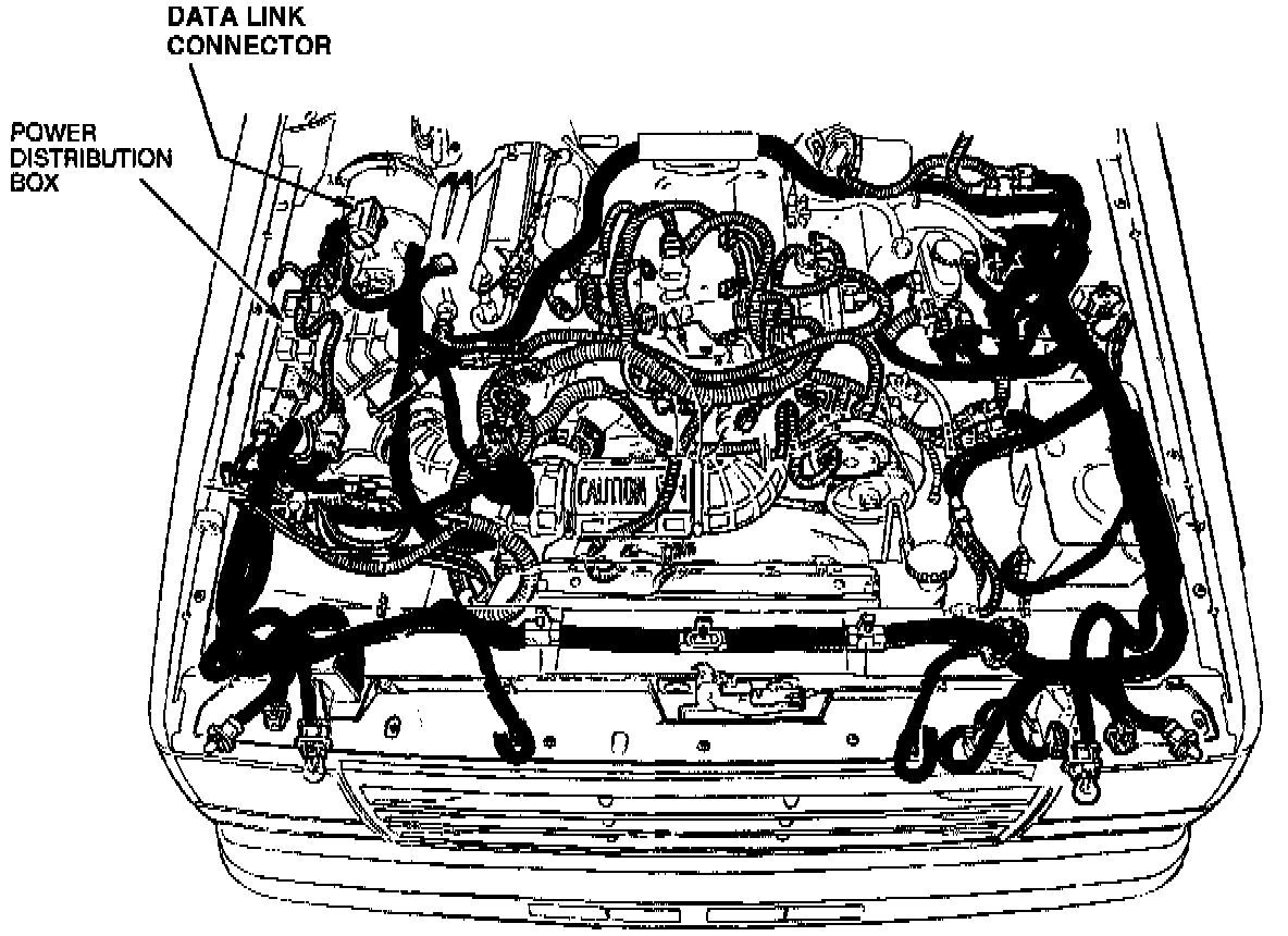 The Data Link Connector is located on the right side of the engine compartment near the Power Distribution Box.