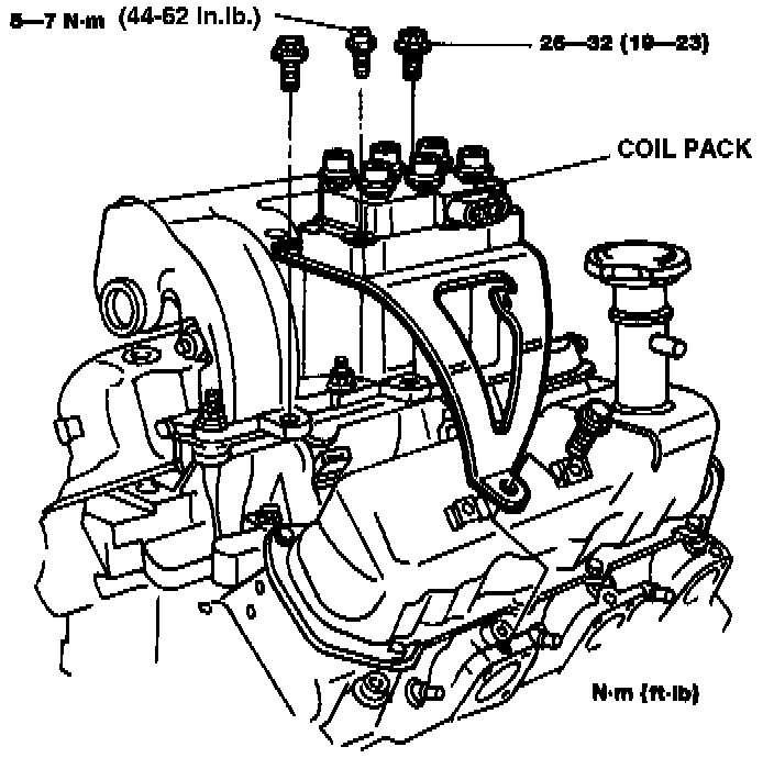 1. Install the Coil Pack on the mounting bracket and torque the coil pack mounting screws to: 5-7 Nm (44-62 in.lb.).