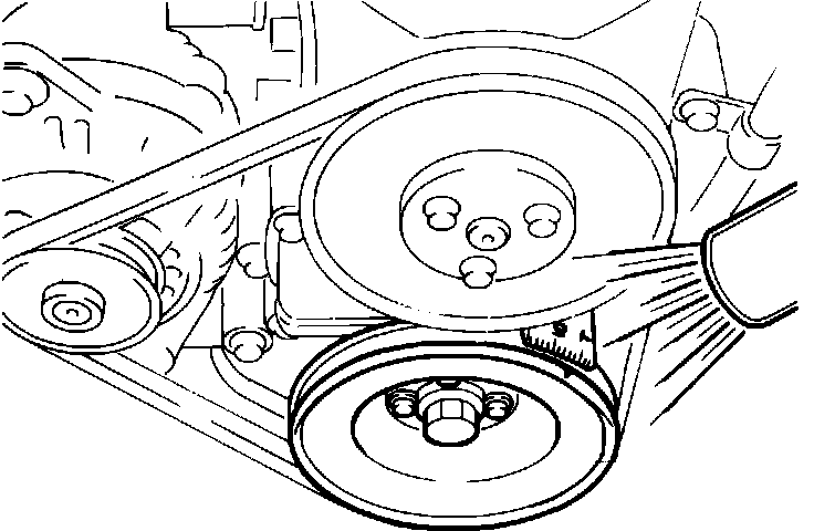 1. Check that timing mark (yellow) on crankshaft pulley and mark on timing belt cover are aligned: