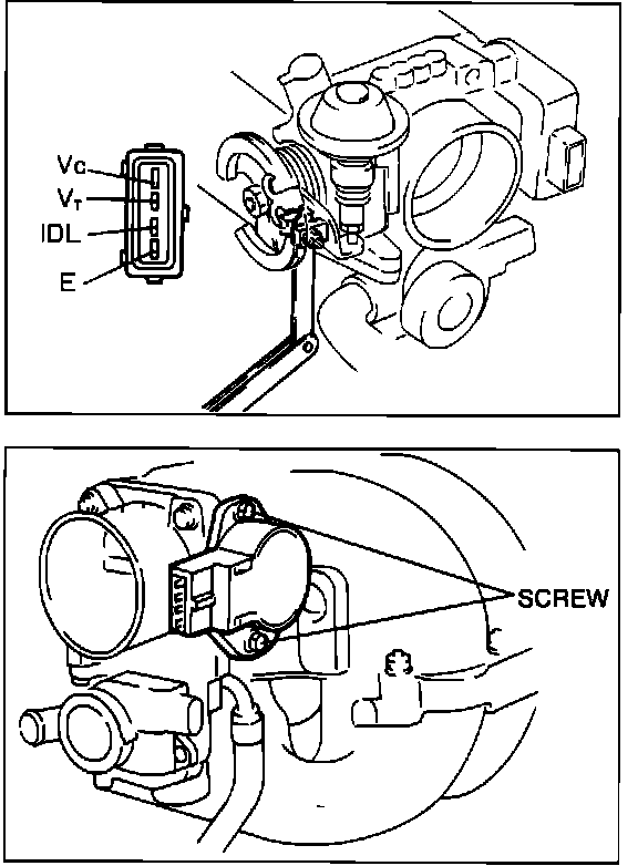 8. Open throttle fully and verify resistance between sensor terminals "E" and "Vt" is approximately 5K ohms.